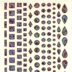 Add a touch of vibrant sparkle to your cards with these gem stone look-a-likes! Use a craft knife or needle tool to lift and place. Can be used on paper, glass, wood, metal or plastic. Each sheet measures 2" x 9" and contains over 400 individual stickers. |