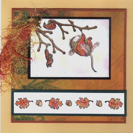 Send a smile to friends and family with this sweet House Mouse design - Alternate B - Autumn Slumber. Combine with Alternate C - Leaf & Acorn Border on one of our beautiful Autumn Background Papers for just the right look!